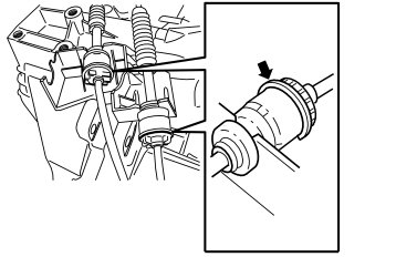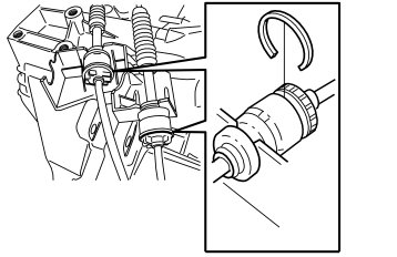 Disconnect the cable from the end of the gear selector assembly. Pull back the locking sleeve.