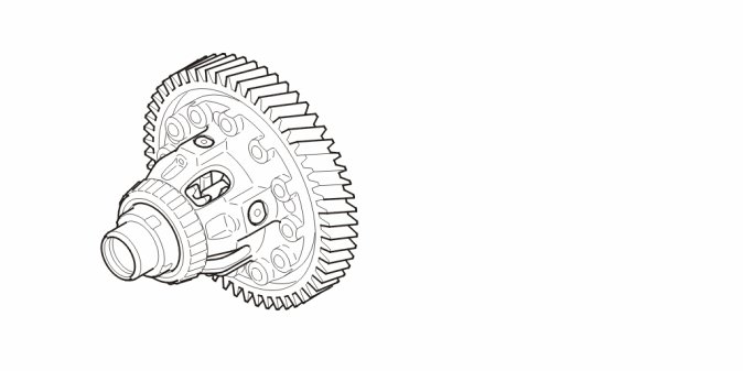 When cornering, the differential gears rotate to compensate for the different speeds of the wheels. Because the small side gears are rotating on the shaft journal, the drive shafts can rotate at different speeds. Power is transferred from the differential housing to the drive shafts via the small side gears in the same way as when driving straight ahead. Both drive wheels still have the same driven power.