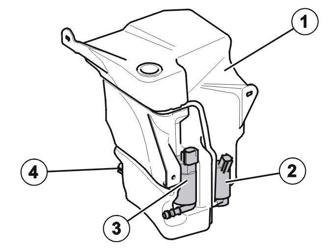 Both variants can be ordered with or without headlamp wash / wipe. Vehicles with headlamp wash / wipe have a high pressure pump located on the outside of the washer can (3).