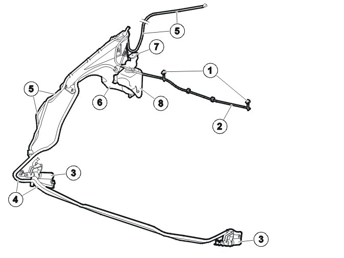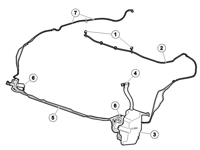 - Hoses and nozzles for headlamps, windshield and rear windshield.