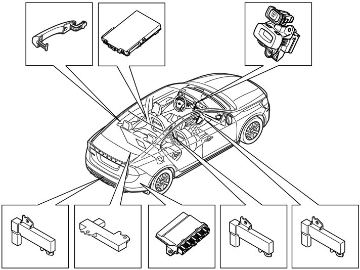 Note! In certain cases malfunctions may occur in the system when communication between the keyless vehicle module (KVM) and the remote key is interrupted for different reasons. These malfunctions are not due to any electrical faults and do not generate any diagnostic trouble codes (DTCs).