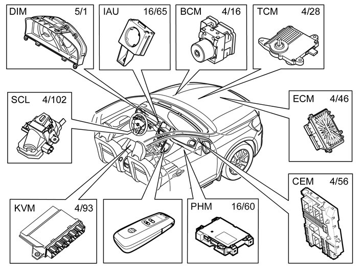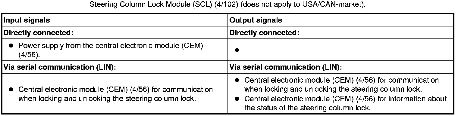 - Steering Column Lock Module (SCL) (does not apply to USA/CAN-market).