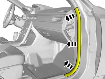 Caution! The front and upper sill panel must be removed and installed as one unit.