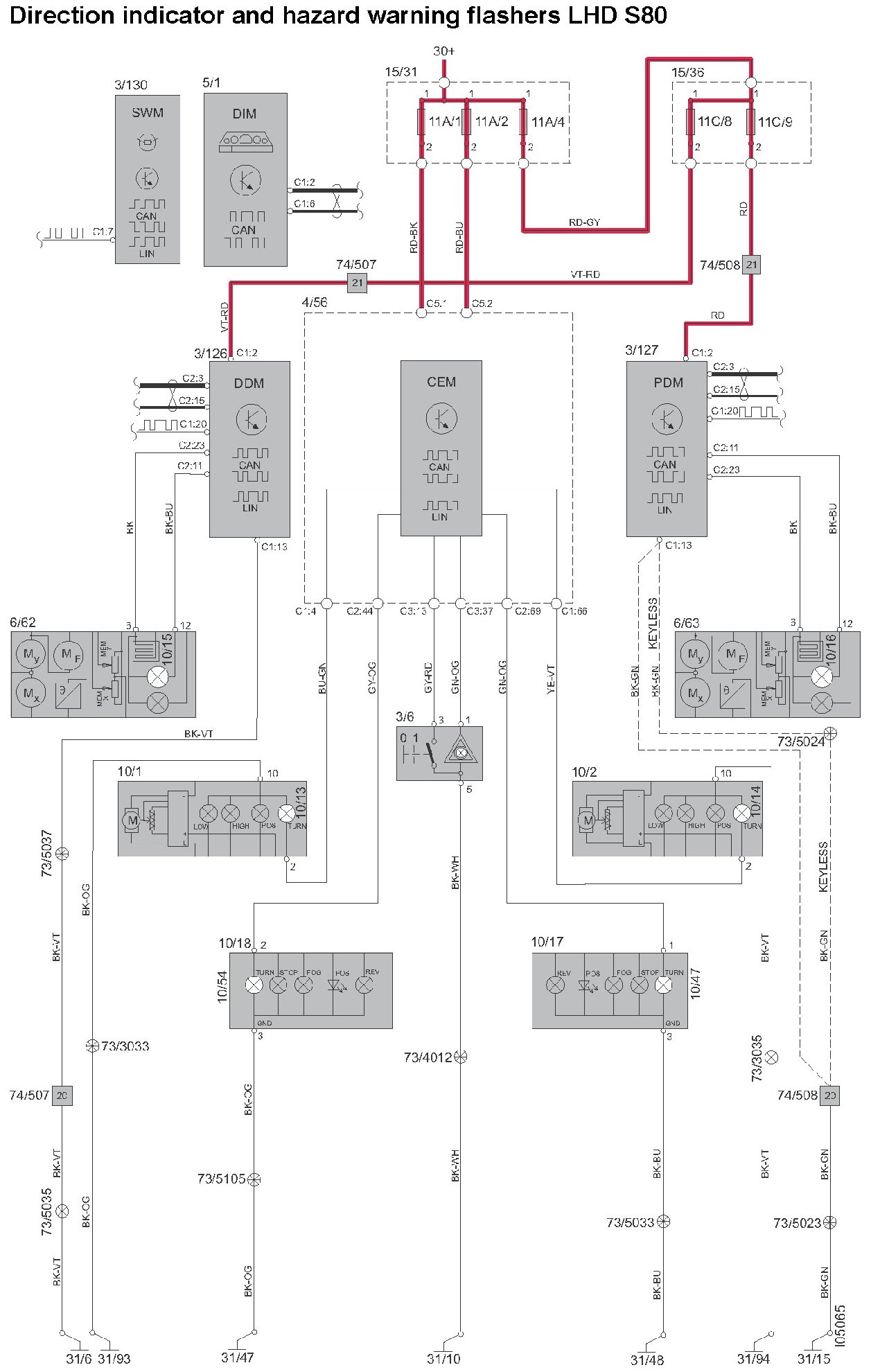 Direction Indicator And Hazard Warning Flashers LHD S80