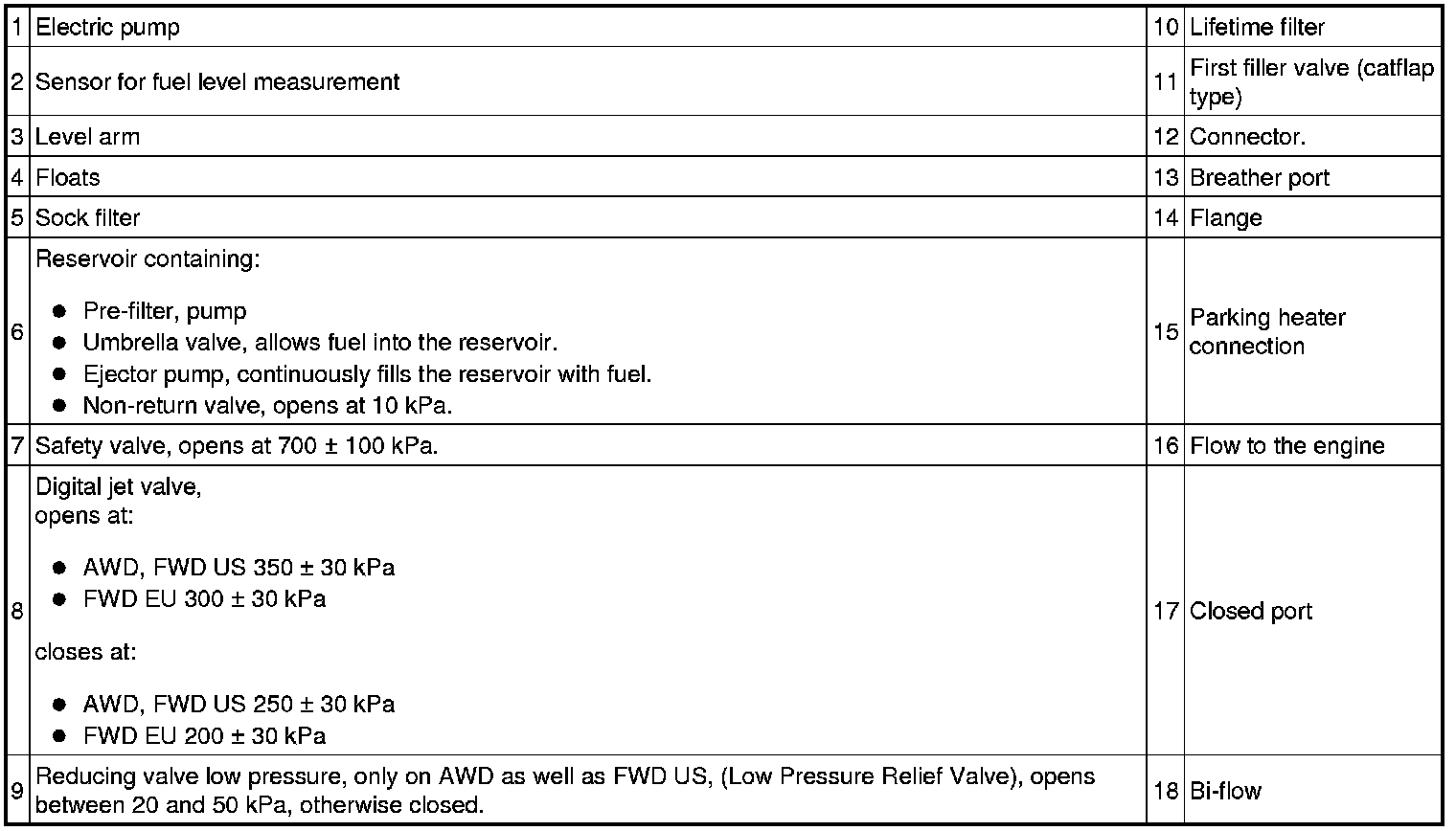 The fuel pump are supplied electrically via the pump electronic module (PEM) with variable effect to be able to supply variable fuel pressure/flow and grounded in the bodywork via the pump electronic module (PEM).
