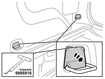 - Insert tool 99905919 into the holes on the upper edge of the cover. Turn the tool and pull off the cover.