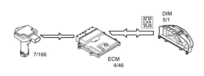 The engine control module (ECM) continually stores the speed selected with the steering wheel buttons. The stored speed is displayed in the driver information module (DIM).