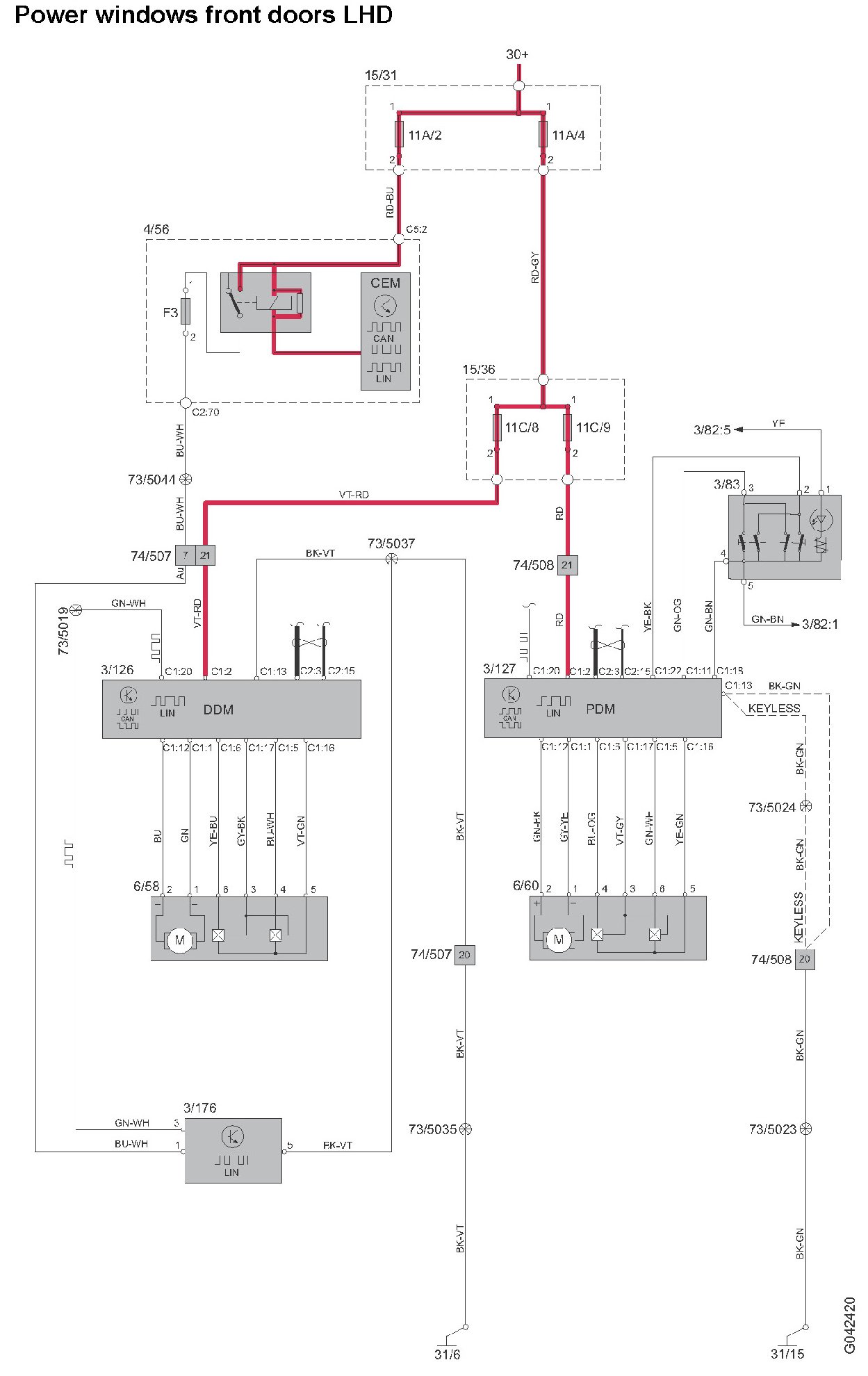 Power Windows Front Doors LHD