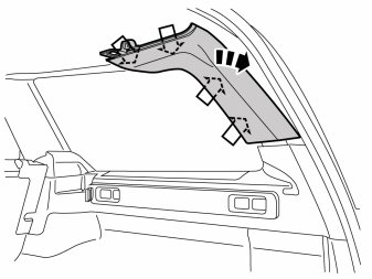 - Carefully pry off the D-pillar panel at the top edge and pull off/up from the side panel. It is secured by four clips.
