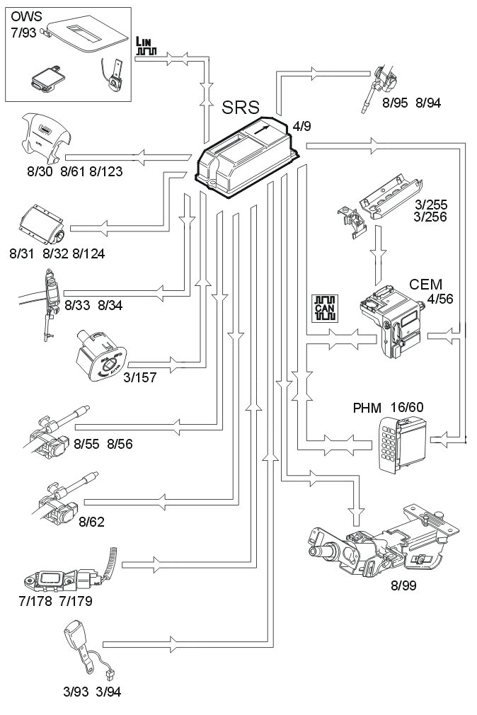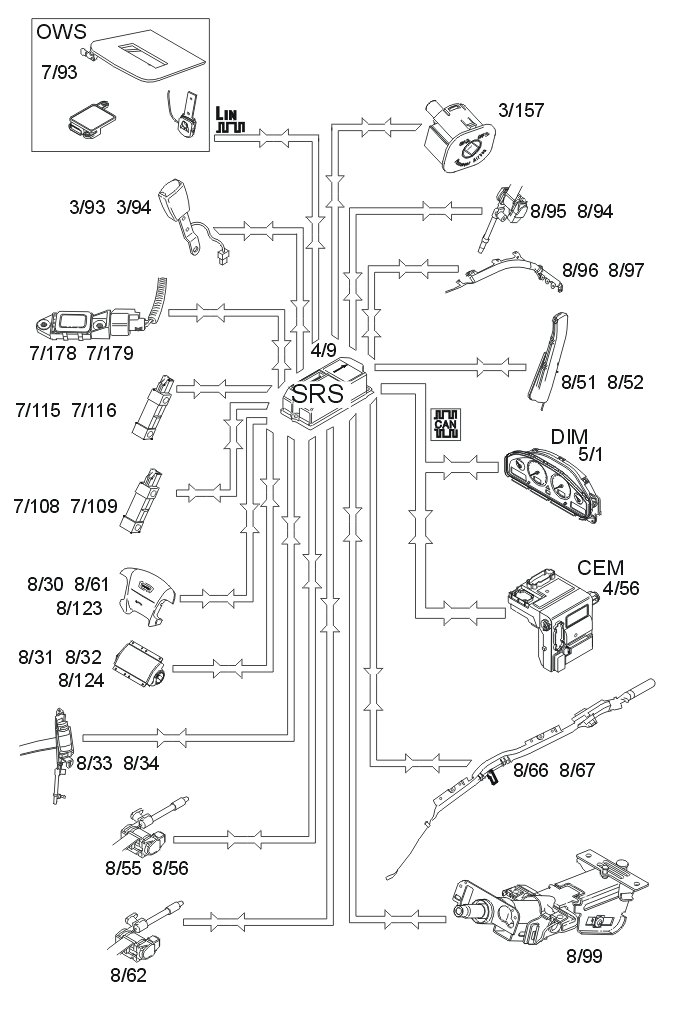 - seat belt tensioners front and rear (8/33, 8/34 8/55, 8/56 and 8/62)