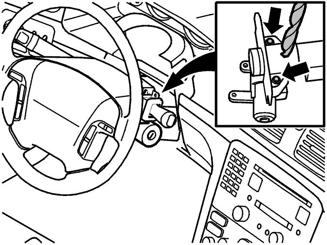 Removing the mechanical cable for the ignition switch interlock (only applies to cars with automatic transmissions)