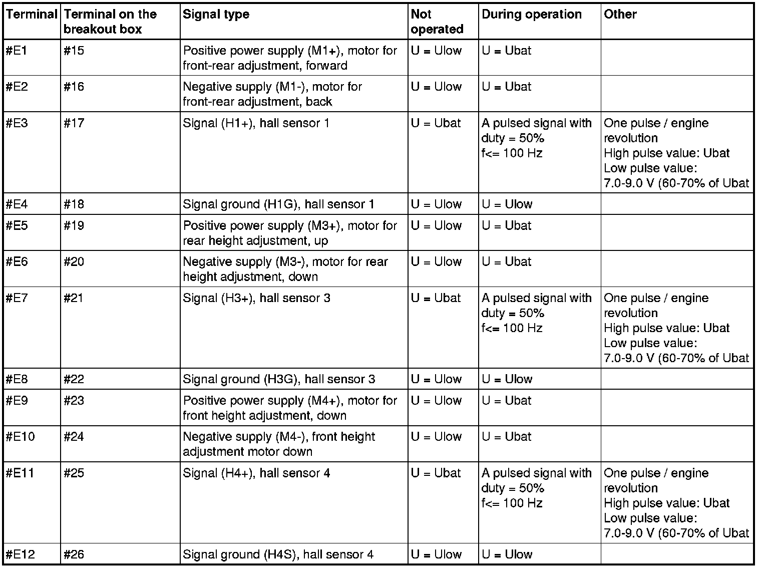 Terminals E1-E12 correspond to terminals 15-26 on the breakout box.