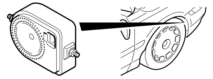 The siren is used as a sound source for the alarm function. The siren is located in a protected position under the fender liner in the front right wheel housing. The siren is available in versions with or without an internal vehicle inclination sensor. The type of siren installed in the vehicle depends on the market and the customer's wishes.