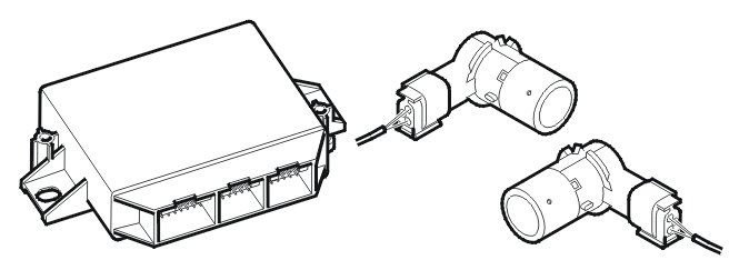 The parking assistance module (PAM) communicates with the rear electronic module (REM) using serial communication. The signals transmitted contain information about status and diagnostics. The sensors are directly connected to the parking assistance module (PAM). The sensors are also powered via the parking assistance module (PAM).