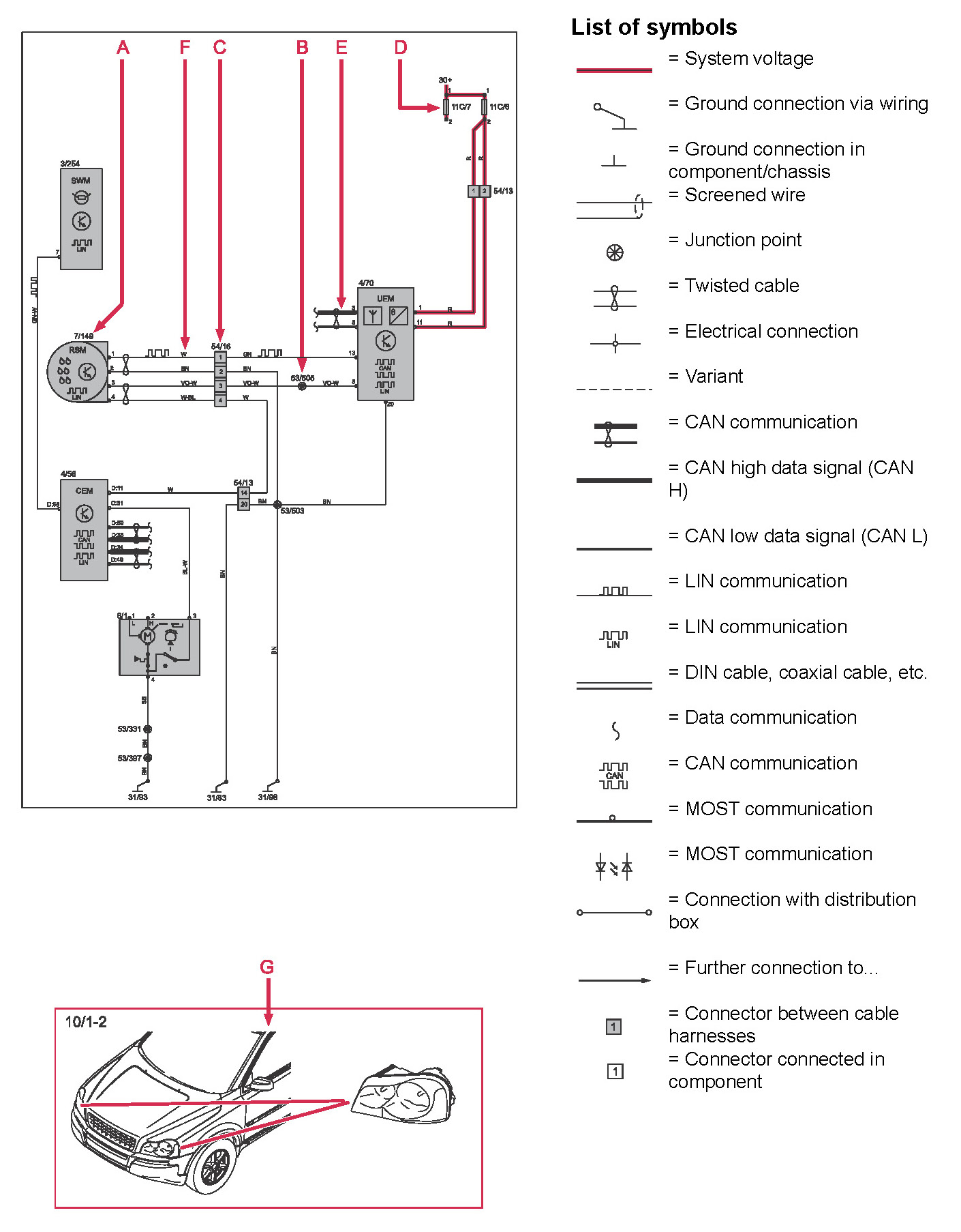 Today's cars are equipped with CAN, LIN & MOST networks that transmit information. Connections to these networks are not shown in their entirety on the respective wiring diagram. Complete information on Data communication can be found in in "Control modules" in the Information Bus.