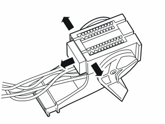 - Carefully pry apart the sides of the connector holder in the ends so that the connector can pass by the retaining hooks.