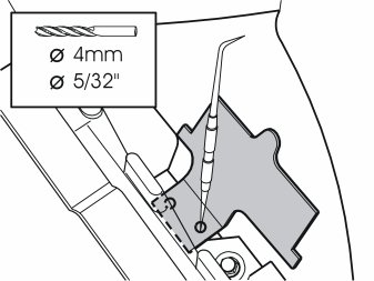 - Drill out the holes. Use a -4 mm (5/32") drill bit.