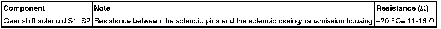 Connect an ohmmeter between terminal #1 and the outer casing of the gear shift solenoid. For resistance values see the table below.