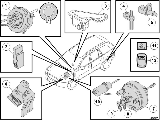 An integrated gyroscope in the DSTC cluster calculates the dynamic angle of lean and therefore the risk of roll over.