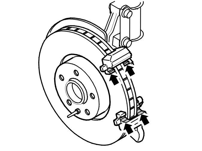 Clean and check the brake pad mating surfaces in the brake caliper and caliper holder.