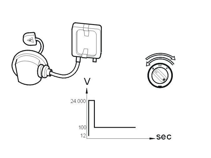 - If the high voltage circuit is broken (such as due to an open circuit, defective bulb or no bulb in the lamp socket), during each activation the system attempts to light the lamp for a period of 700 ms. During the period, there is high voltage across the ballast.
