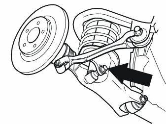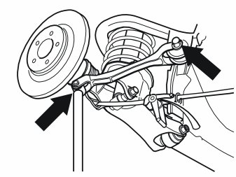 - The control arms' lower mountings in the wheel spindles 80 Nm (59 lbf. ft.)
