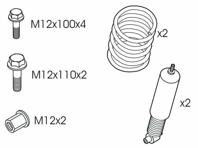 - Take a new M12x100 screw from the kit for the lateral link's front mounting.