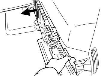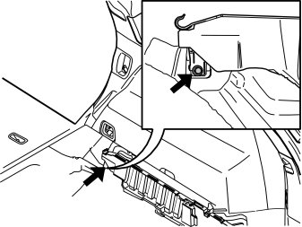 - Carefully pull off the load floor support at the rear edge by first pressing in the side panel slightly at the rear edge, opposite the two stud screws on the load floor support so that it goes free and then lift it out.