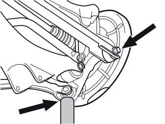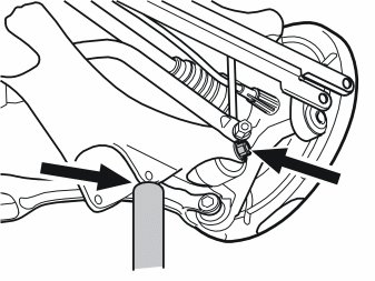 - Remove the screw and nut for the track rod's mounting in the wheel spindle and place the end above the mounting.