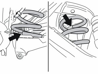 - Position the spring's ends against the relevant stop in the upper mounting and control arm.