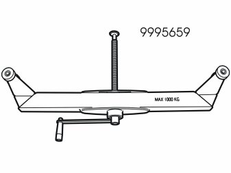 Tensioner, part no. 999 5659, is used when working with suspension because it is extremely important that the screwed joint to the rubber bushings is tightened in the normal position, i.e. same position as when the car is on the ground with three people in the car and a full tank of fuel. Use the tensioner to relieve the load from the component parts in the suspension when at removal/installation.
