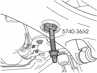 - Lift up the tensioner with the threaded bar (part no. 999 5659).