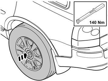 - Reinstall the wheels. Tighten the wheel bolts alternately and torque tighten to 140 Nm (103 lbf.ft.)