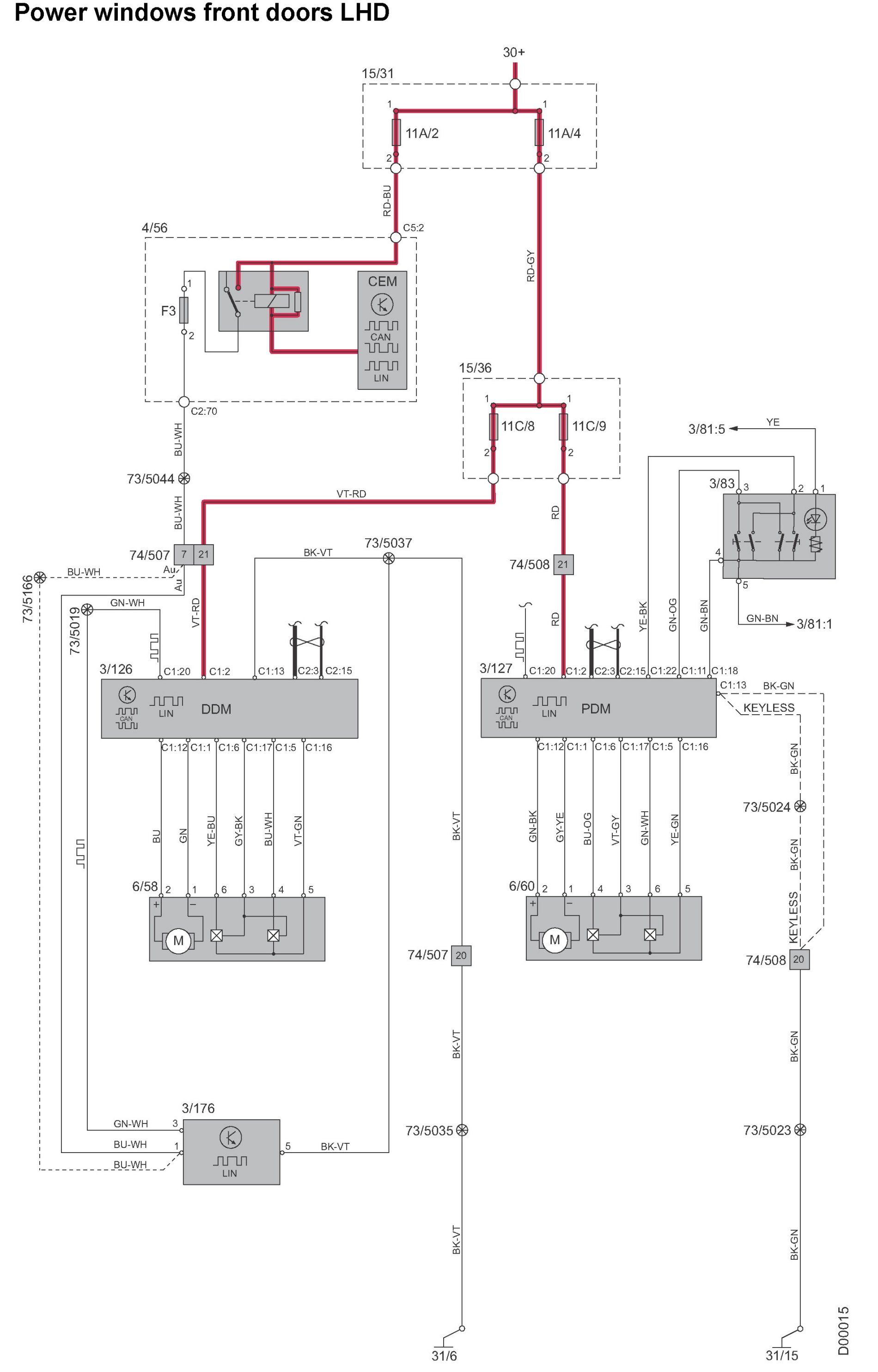 Power Windows Front Doors LHD