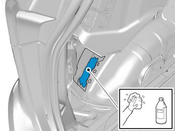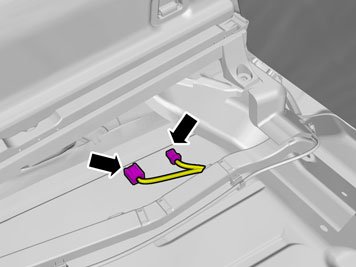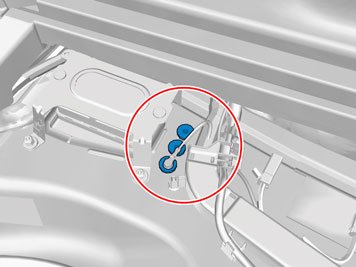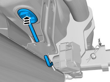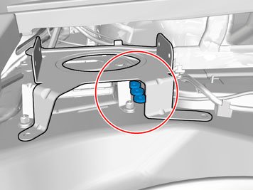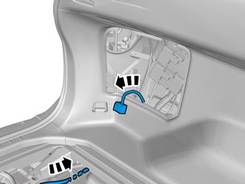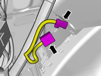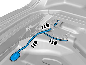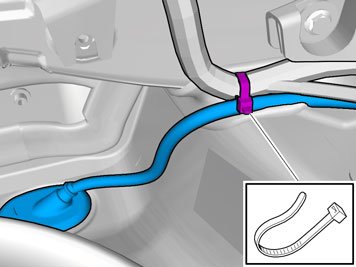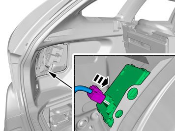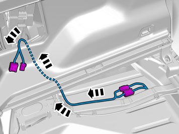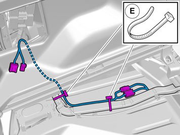 - Insert the cable with the connector in the hole in the spare wheel well and install the rubber bushing.
