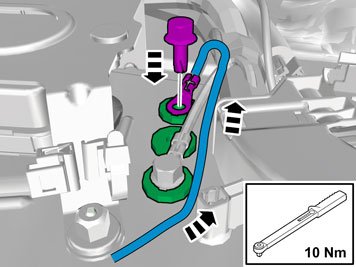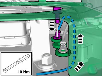 - Install the cable and ground screw Tightening torque: M6, 10 Nm